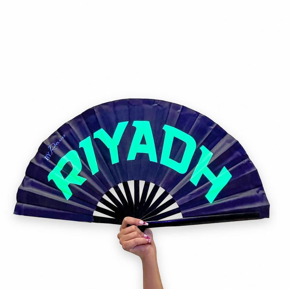 Side 2: "Riyadh " showing in big font and will reflect a green neon colour when UV lights hits it.